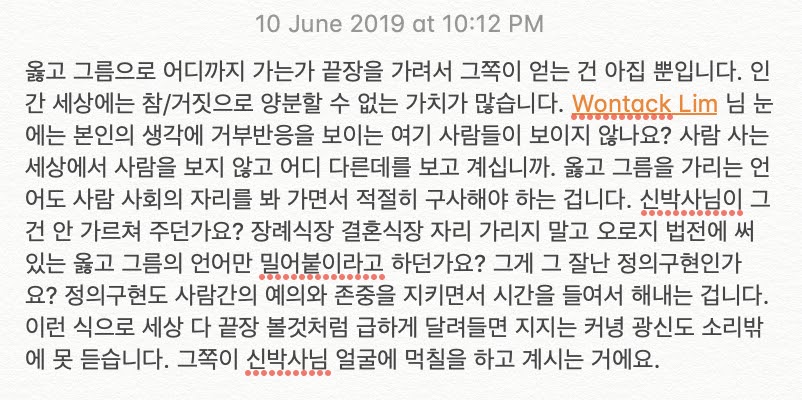 * [190612 17:00 update] 저는 신영준 박사로부터 차단되었습니다. 건강한 토론문화에는 차단이 답이라는 내로남불을 직접 보여 주시었습니다. 그것이 범법자라도 사람에게는 존중이 있어야 하는 것이 저의 생각입..