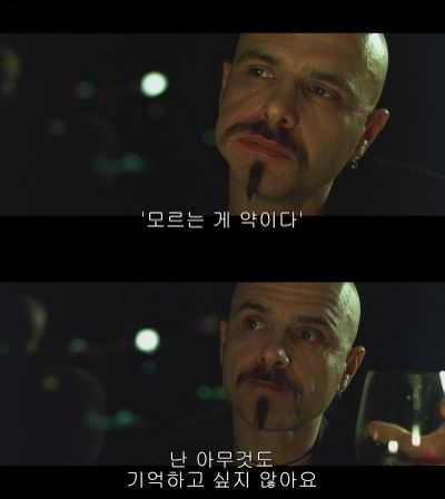 이러한 스토리 플롯은 2000년대 초에 개봉한 매트릭스 (Matrix)에서 등장하기도 합니다. 총 3부작으로 제작된 영화의 1편에서, 사이판인지 사이만인지 하는 대머리 친구는 매트릭스 밖의 현실이 너무나 고통스러운 나머지, 매트릭스 안에다 자기를 다시 꽂아주는 대가로 현실의 친구들을 배신하고 말지요. 그도 매트릭스 안의 세계가 가짜인줄 잘 알지만, 현실이 너무나 고통스러우므로 에라 잠드는게 낫겠다. 하는 것이네요.
