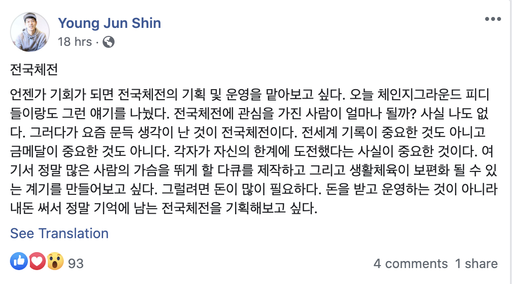 갑자기 웬 전국체전? 이라고 하실 수도 있는데...