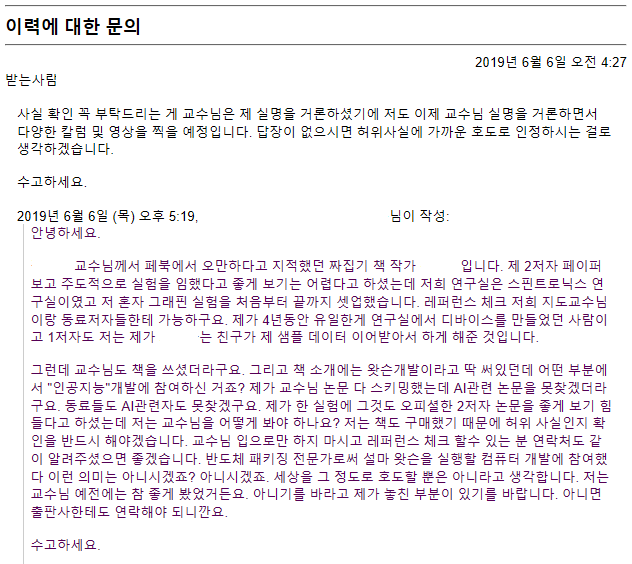 어디서 협박문을 갖다가 사실확인을 부탁드린다는 문장을 곱게 달아서 보내셨는지.