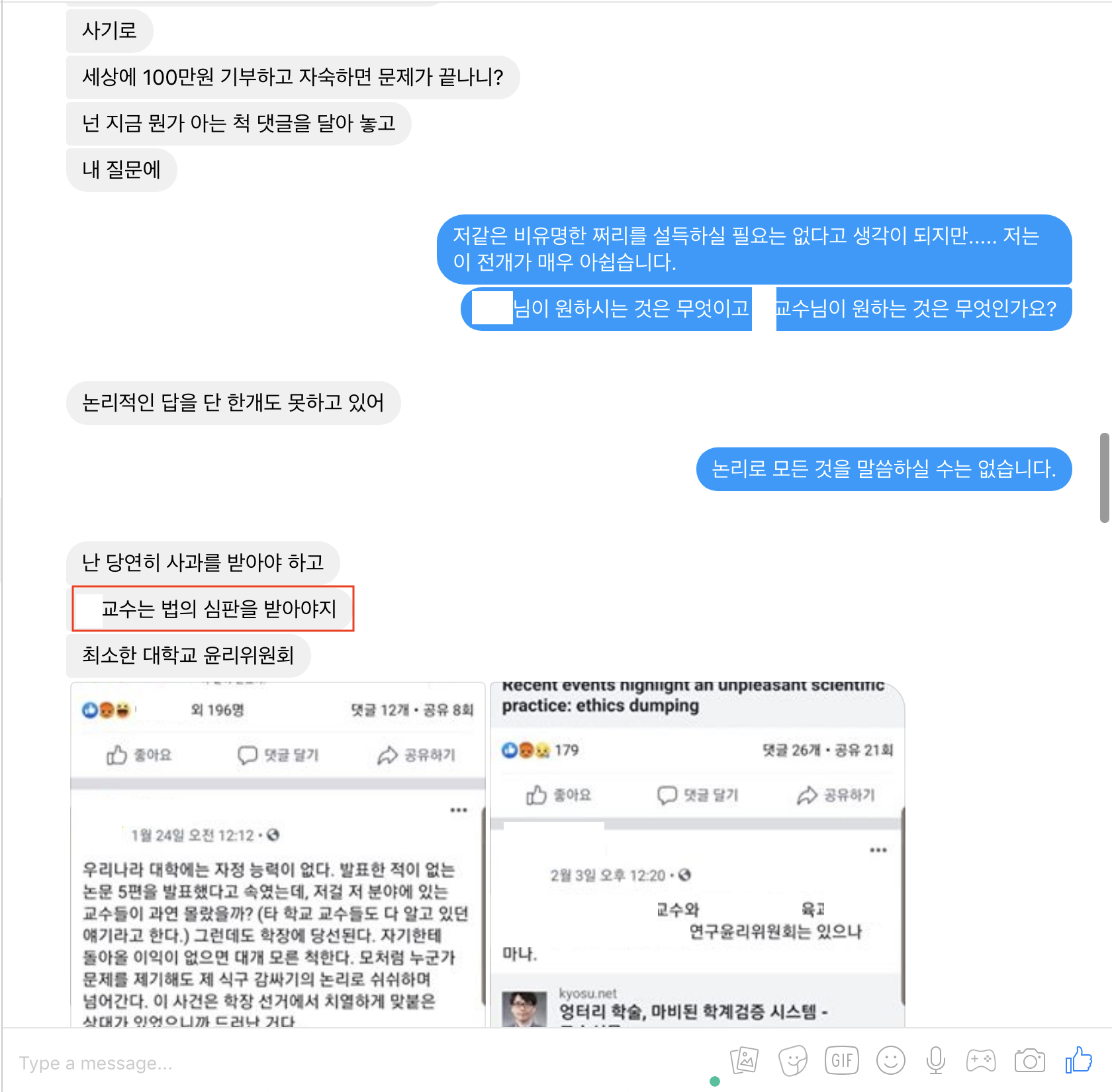 교수에게 (공공 영역의) 죄가 있다고 가정합시다. 그러면 그쪽은 무슨 권한으로 형벌을 이미 집행해버리셨는지요?